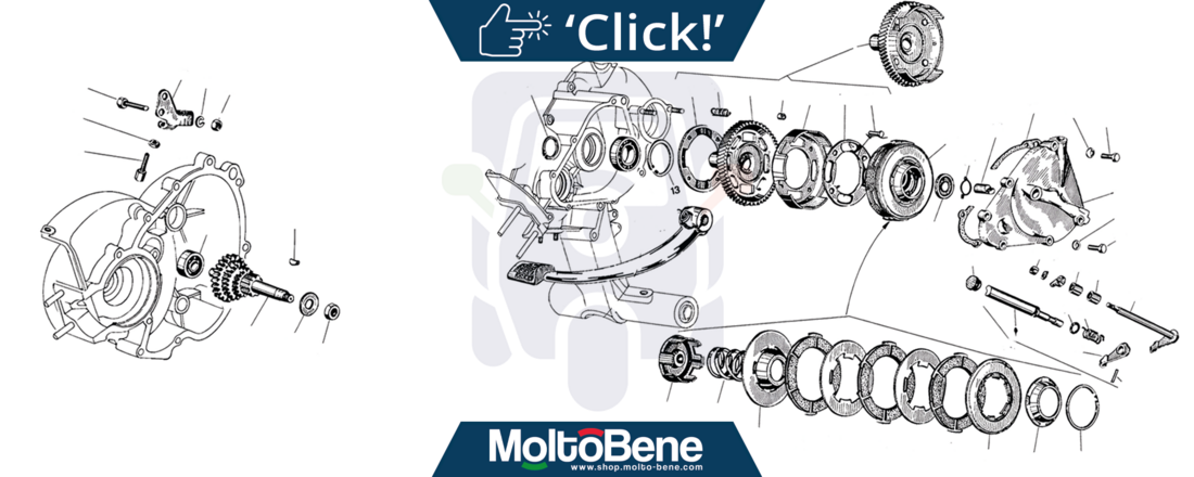 Op deze pagina vindt u reserveonderdelen voor de koppeling van de vintage Piaggio Vespa 50.